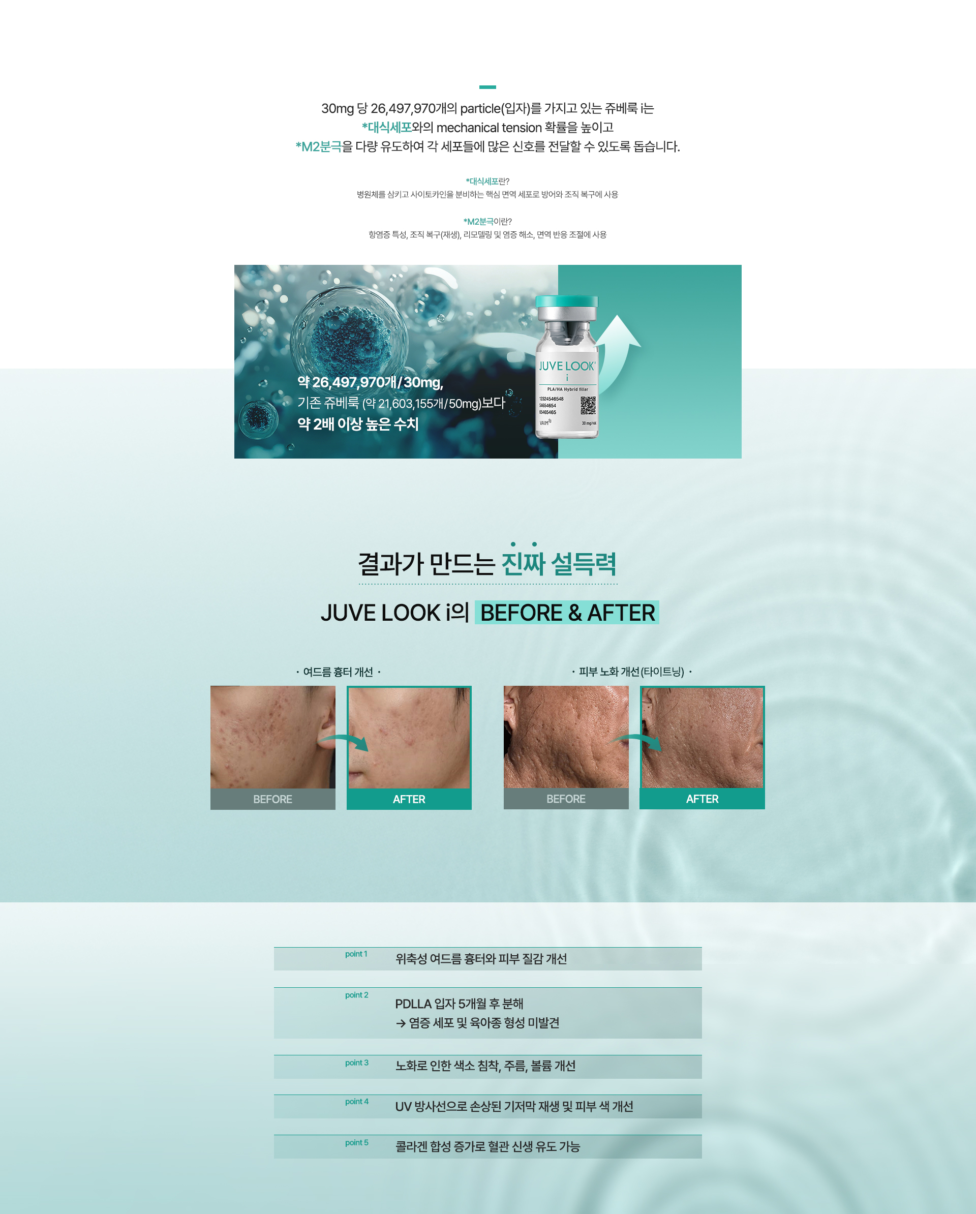 30mg 당 26,497,970개의 particle(입자)를 가지고 있는 쥬베룩 i는 *대식세포와의 mechanical tension 확률을 높이고 *M2분극을 다량 유도하여 각 세포들에 많은 신호를 전달할 수 있도록 돕습니다.